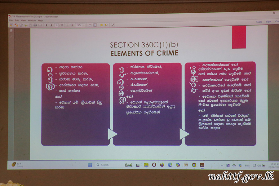The awareness program on Human Trafficking, Investigations, and Regularized Coordination was conducted by the Counter Human Trafficking Unit of SLBFE, with the participation of officers from the I & E Department, HTSMCID, and SLBFE, together with State Counsel Sajith Bandara as a resource person, on 25 August 2025.